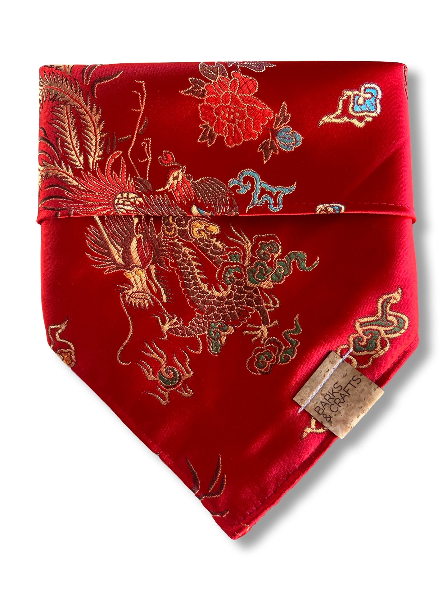 Our best-selling Red Dragon Phoenix Snap-on Pet Bandana returns in very limited quantities to welcome the Year of the Horse - a symbol of strength, freedom, confidence, and forward momentum.