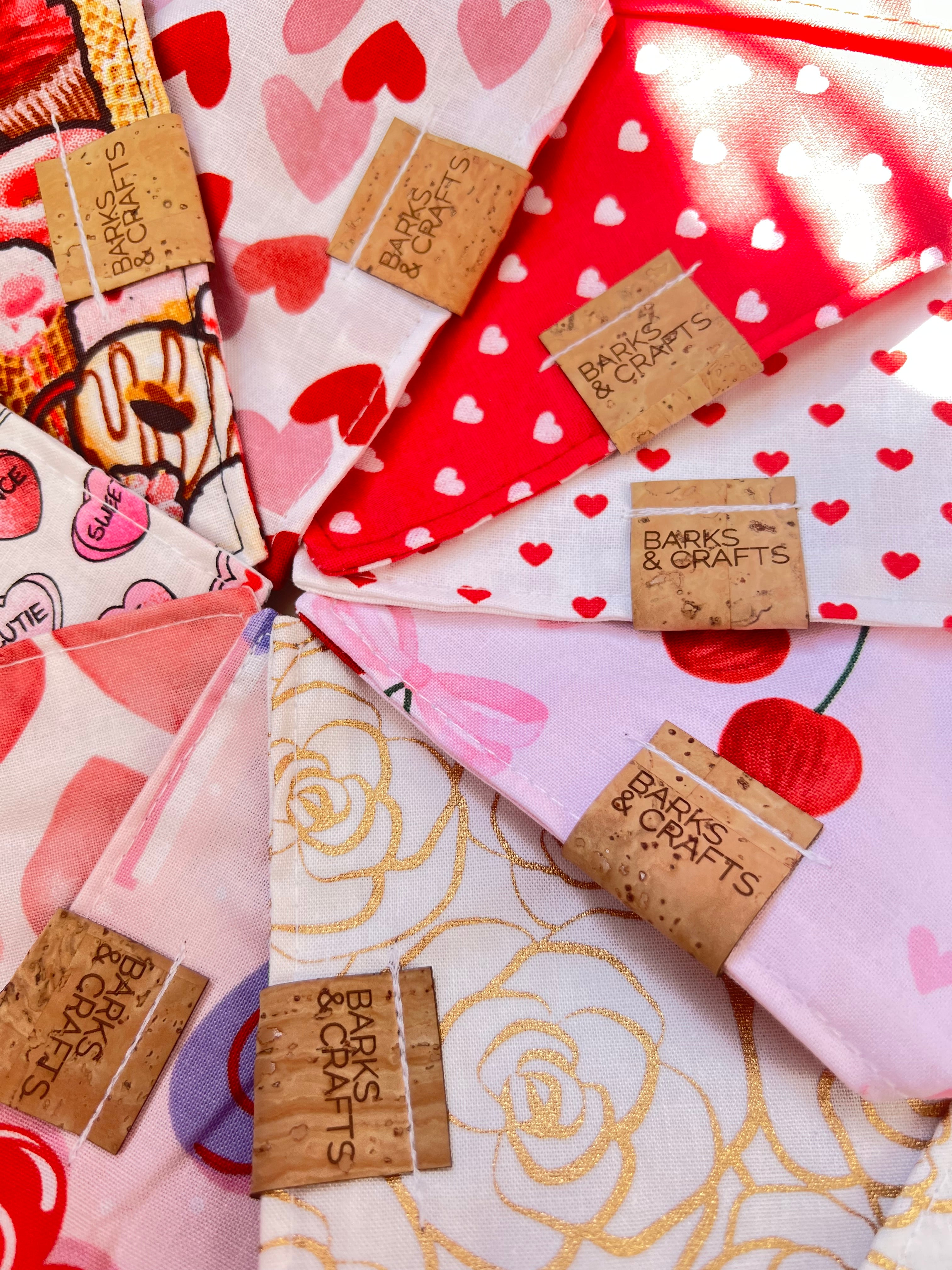 Embroidered Hearts Gingham Snap-On Pet Bandana