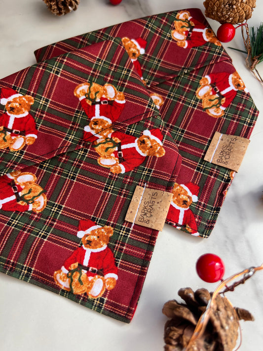 Bear-y Merry Plaid Snap-On Pet Bandana