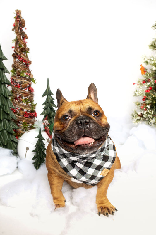 Black and White Buffalo Plaid Snap-On Pet Bandana